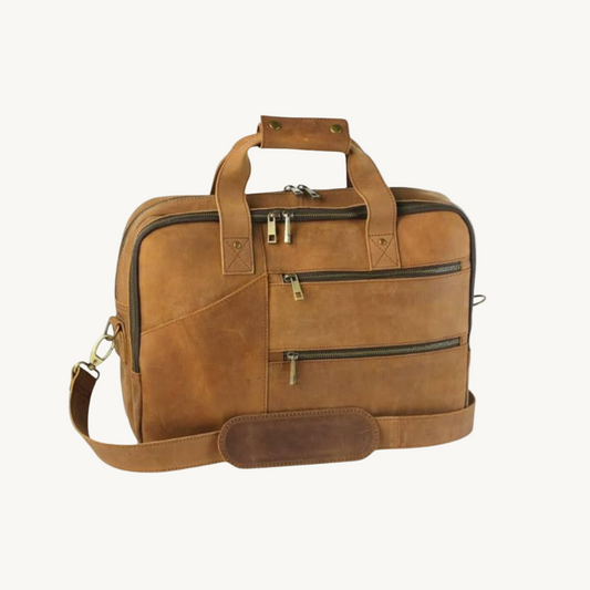 Tan Brown Artisan Leather Briefcase