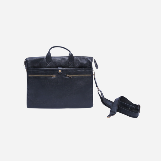 Black Multi-Compartment Leather Briefcase
