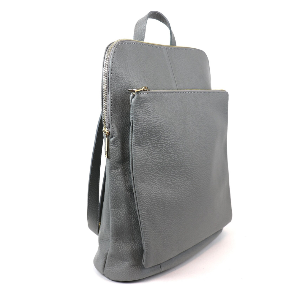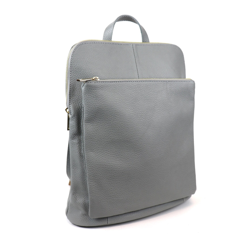 Pebbled Gray Leather Backpack